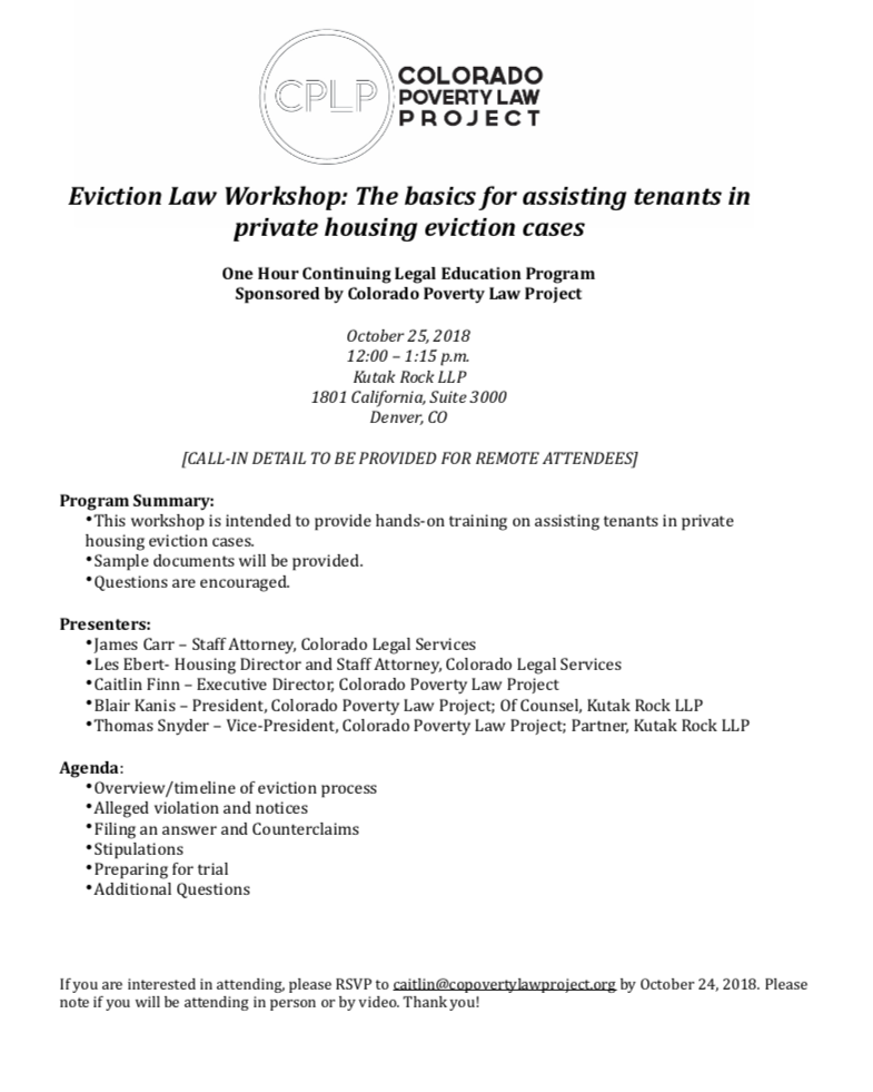 Colorado Poverty Law Project is excited to be a part of the Denver Eviction Defense Program.